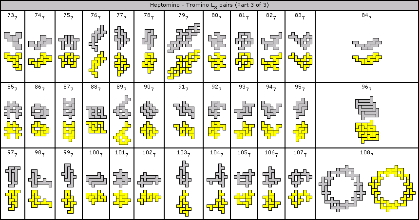 11 solutions by Michael Reid: heptominoes 26, 68, 73, 83, 84, 103, 104, 105, 106,