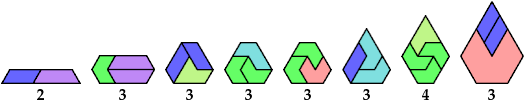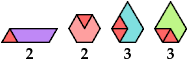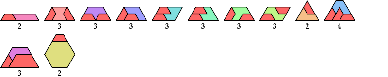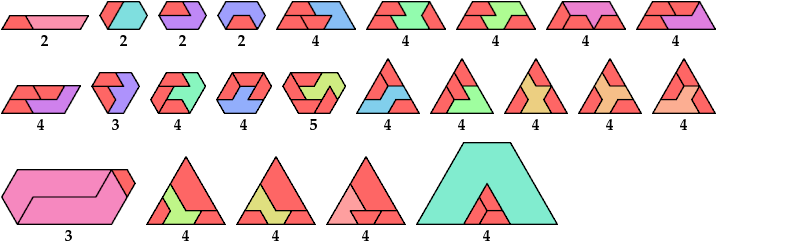 Here I show minimal known convex polygons formed by pairs of scaled polyiamonds with 1 through 7 cells. If you find a smaller solution or solve an unsolved case, please write.