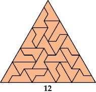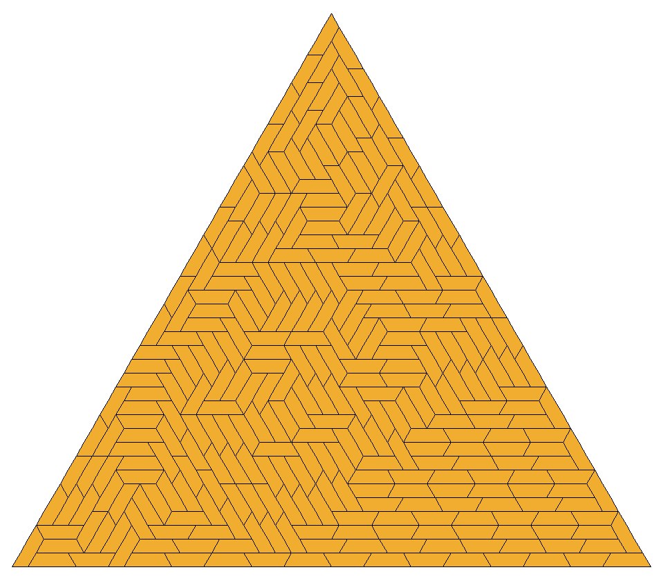 The resulting triangle has side 567. It has 45,927 tiles! That is too many to display here. But a smaller tiling may exist.
