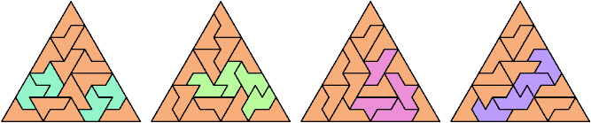 A heptiamond is a plane figure formed by joining 7 equilateral triangles edge to edge. There are 24 hexiamonds: