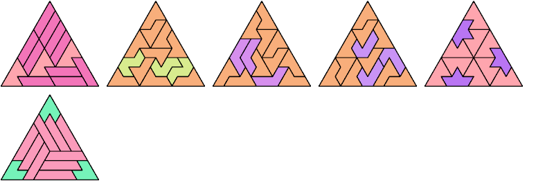 Which pairs of a hexiamond and a heptiamond can tile a triangle? Here I show some minimal tilings of triangles by copies of a hexiamond and a heptiamond.