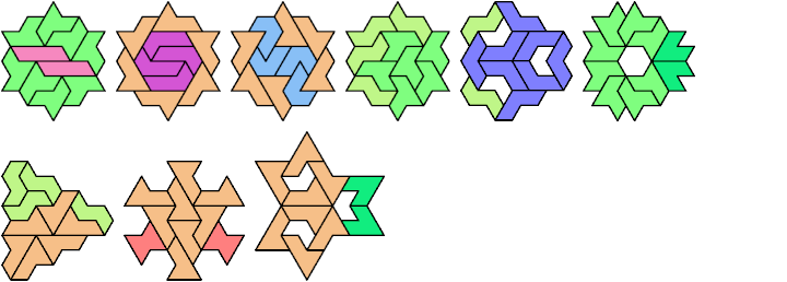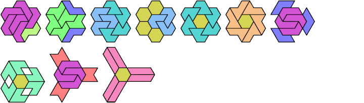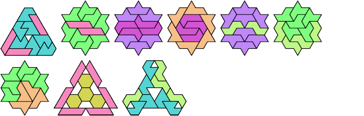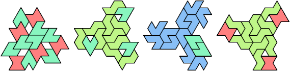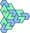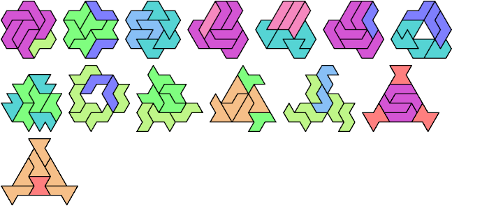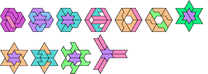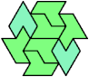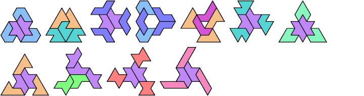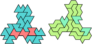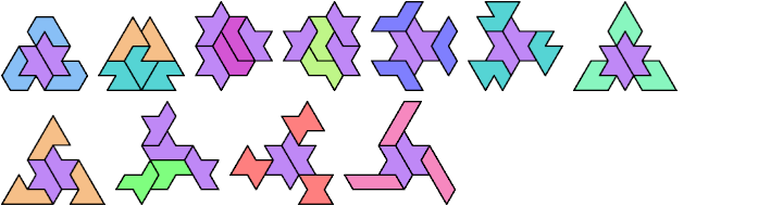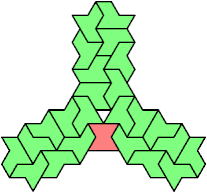 A tri-oddity is an arrangement of a number of copies of a polyform, not a multiple of 3, with ternary symmetry. It is a variant of an oddity.