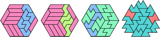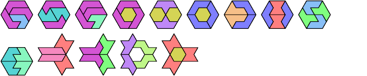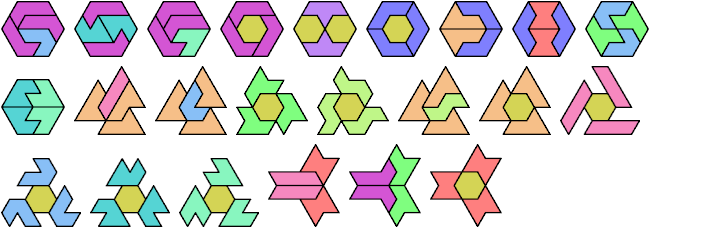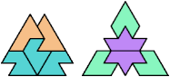 Here I show minimal known tri-oddities formed by copies of two hexiamonds, using at least one of each. If you find a smaller solution, or solve an unsolved case, please let me know.
