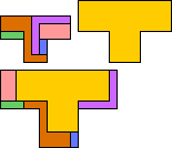 Here I show only dissections of the monomino, domino, trominoes, and tetrominoes. For dissections of pentominoes, see Globular 3-4-5 Pentomino Dissections.