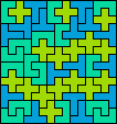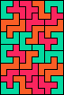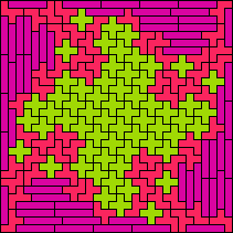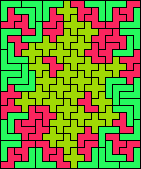 Rodoflo Kurchan's online magazine Puzzle Fun studied the problem of tiling some rectangle with two different pentominoes, in Issue 19, and revisited the problem in Issue 21. The August 2010 issue of Erich Friedman's Math Magic broadened this problem to use two polyominoes of any size, not necessarily the same. My page Two-Pentomino Balanced Rectangles shows rectangles tiled by two pentominoes in equal quantities.