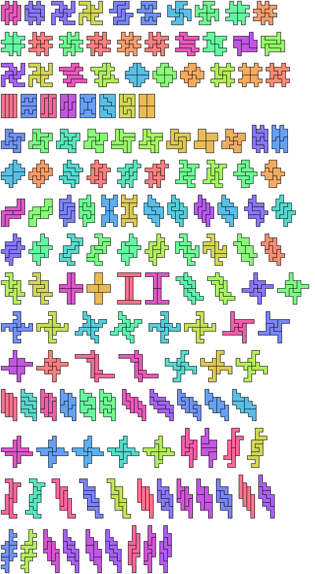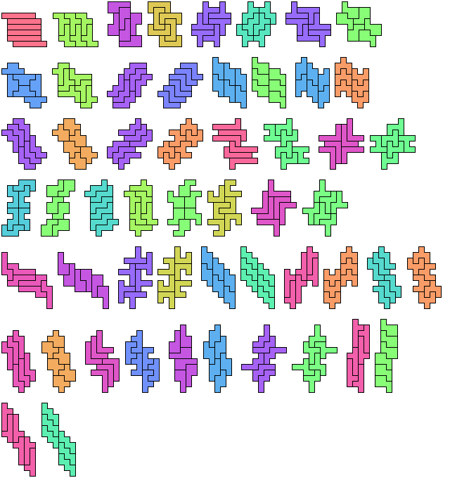 For pentomino compatibility with or without holes, see Pentomino Compatibility. For hexomino compatibility allowing holes, see Resta's Hexominoes. For pentomino-hexomino compatibility without holes, see Holeless Pentomino-Hexomino Compatibility.