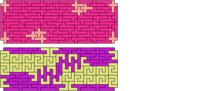 The problem of arranging copies of a polyomino to form a rectangle has been studied for a long time. Here I study the problem of arranging copies of two hexominoes to form a rectangle with the four corner cells removed.