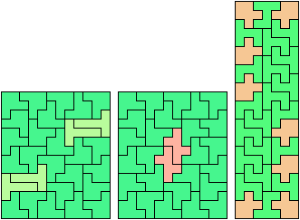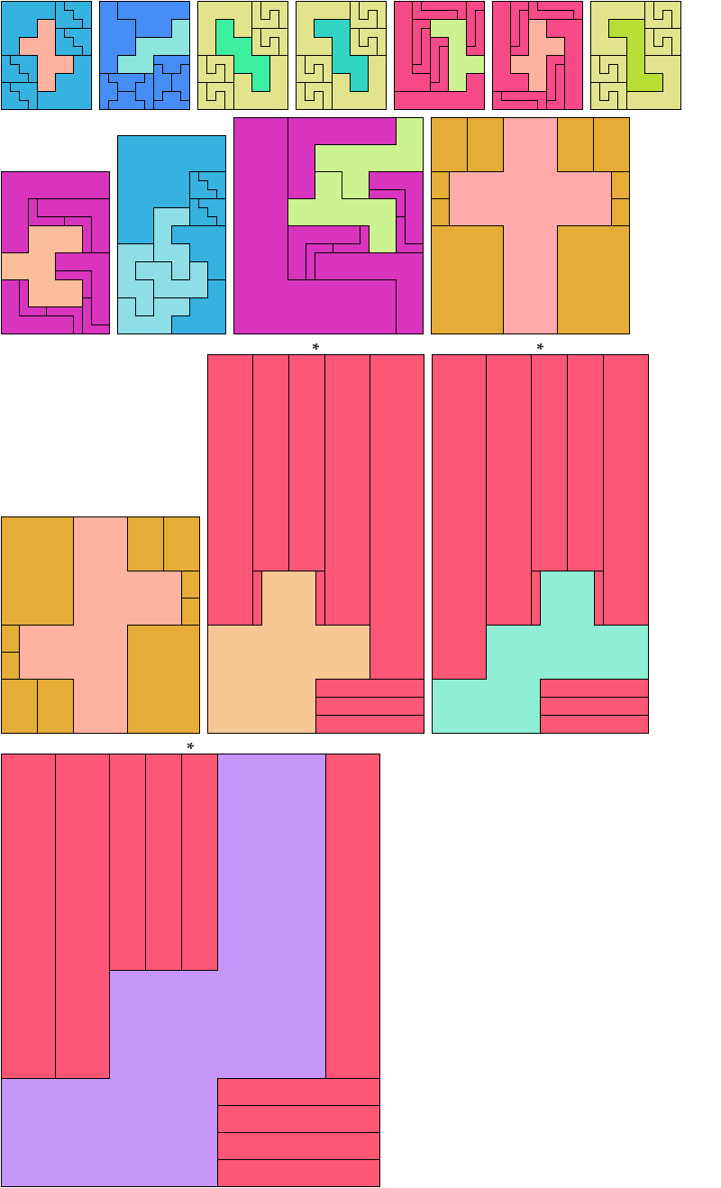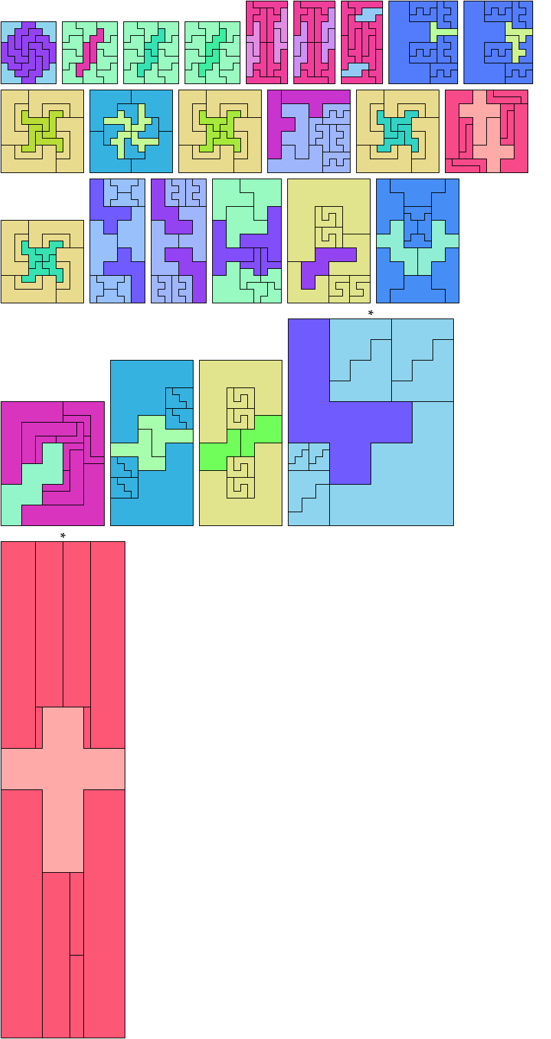 If you find a solution with fewer tiles or solve an unsolved case, please write.