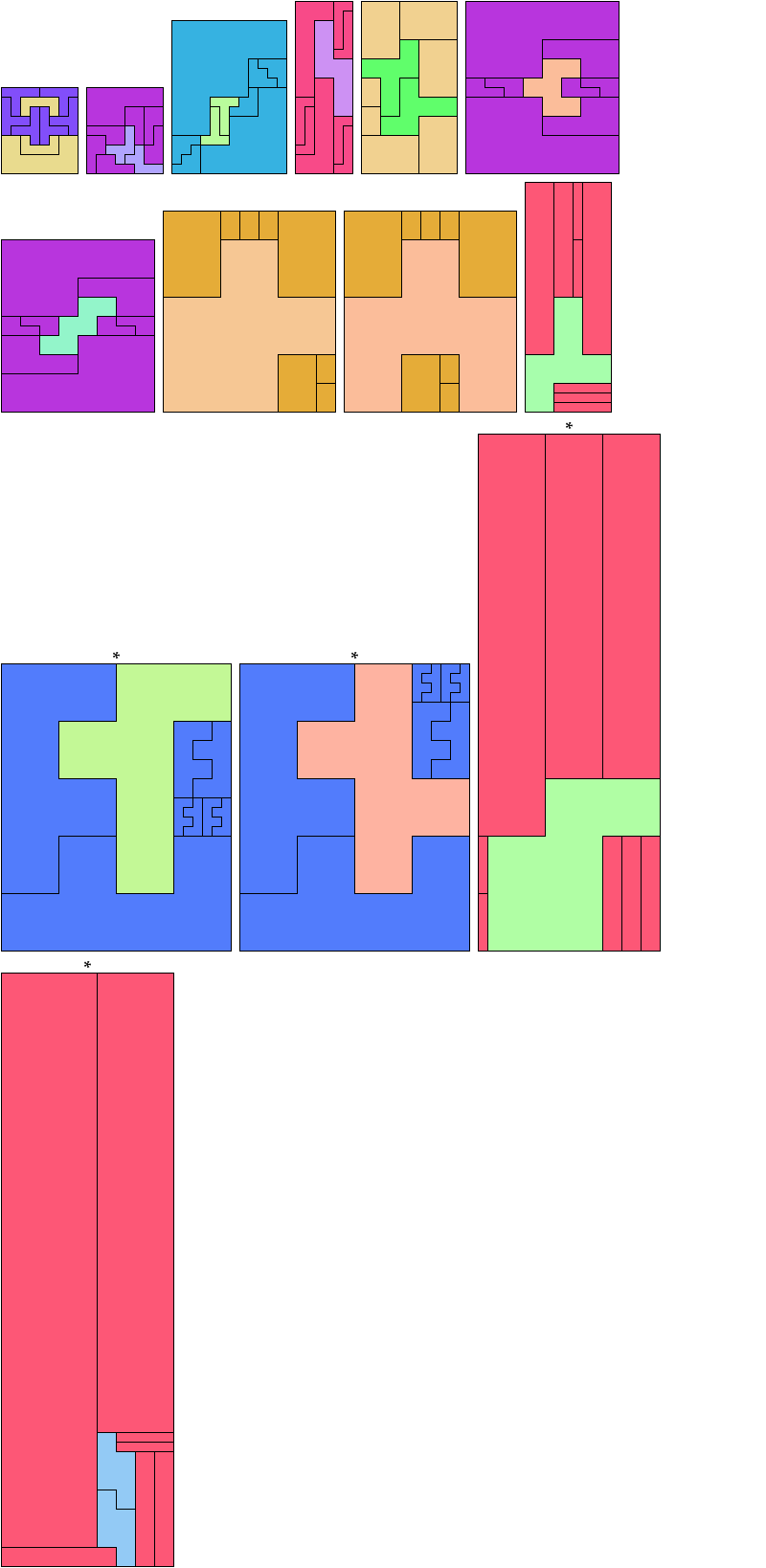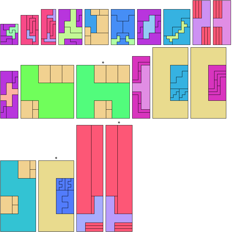 Carl Schwenke and Johann Schwenke found the tilings marked with an asterisk (*).