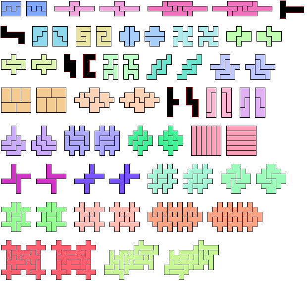 Level polyominoes may be reflected orthogonally and rotated 180° but