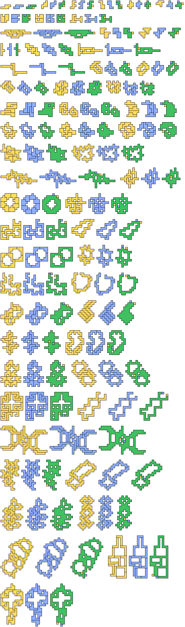 Here I show minimal known solutions for polyominoes of orders 3, 5, and 7.