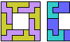 ![]() | Hexomino Pair Rectangles with Domino Holes. Arrange copies of two hexominoes to form a rectangle that may have isolated two-cell holes. |