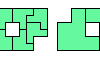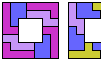 ![]() | Hexomino Pair Rectangles with Monomino and Domino Holes. Arrange copies of two hexominoes to form a rectangle that may have isolated one-cell and two-cell holes. |
