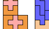 ![]() | Scaled Two-Pentomino L Shapes. Form an L-shaped (hexagonal) polyomino with copies of two pentominoes, letting them be enlarged, using at least one of each. |