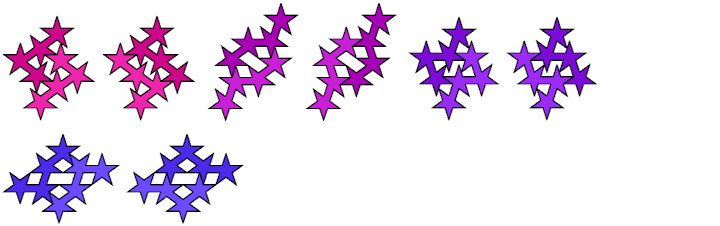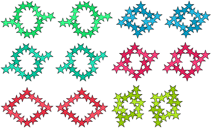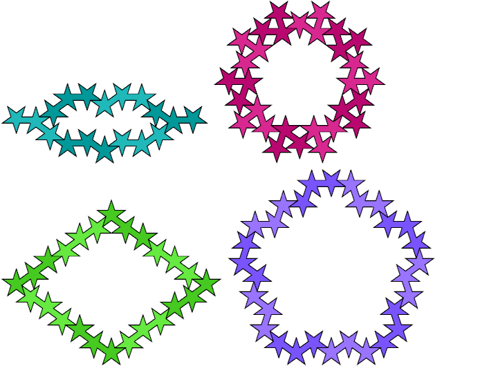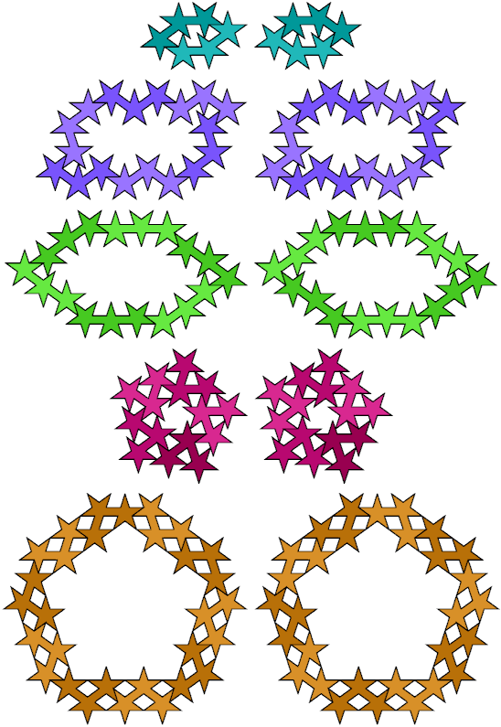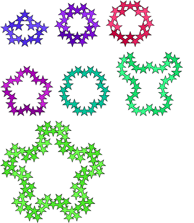A polypentagram is a figure made of regular pentagrams joined