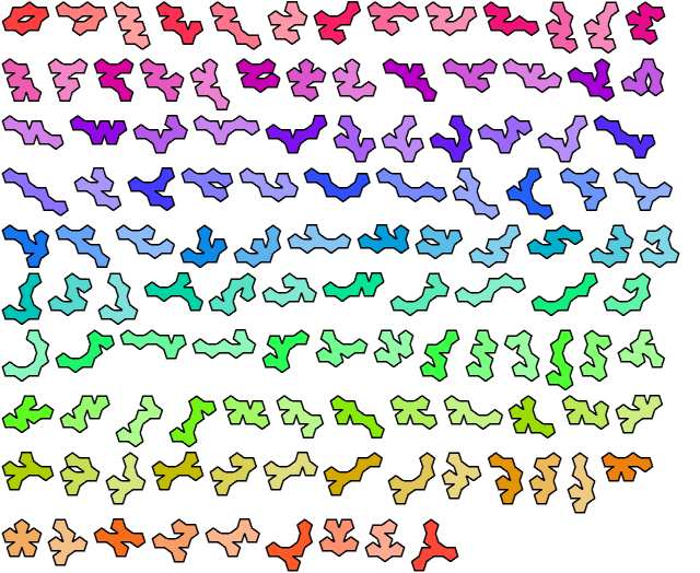 Free polypents are classified by congruence, with no cell used as a base. Two-sided polypents may be rotated and reflected. One-sided polypents may be rotated but not reflected.
