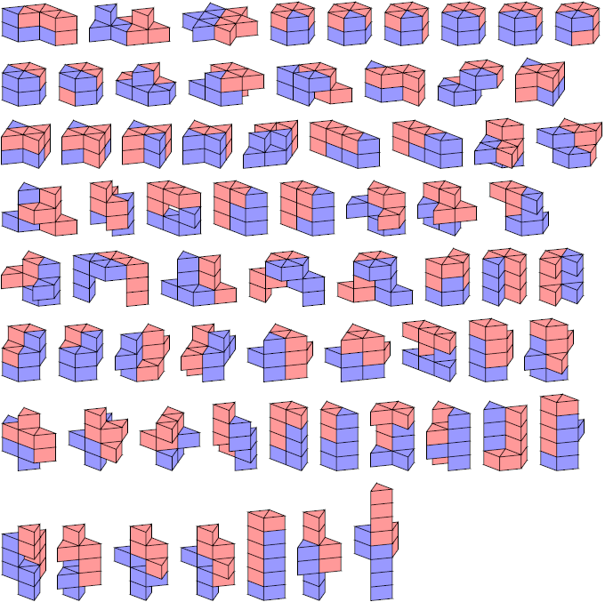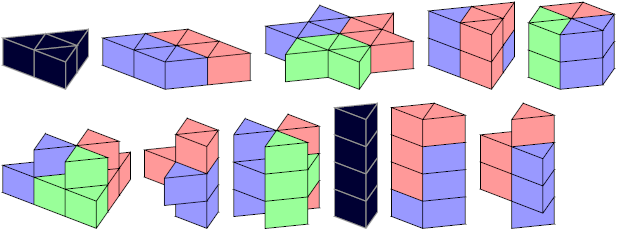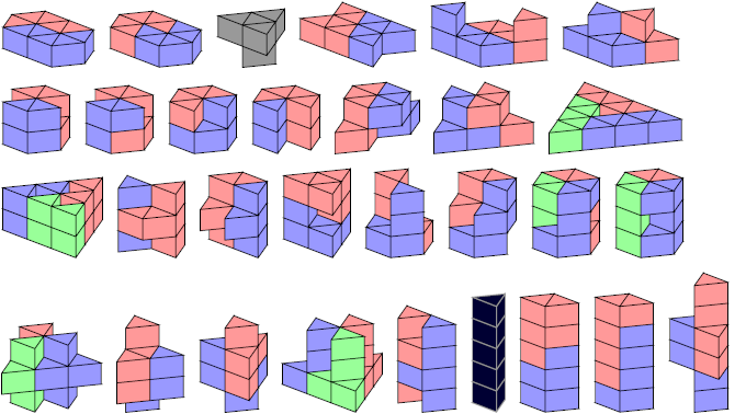 Here are minimal known Galvagni figures for polyprisms of orders 1 to 6. Polyprisms may be reflected. Black polyprisms have no Galvagni figures. Gray polyprisms have no known Galvagni figure. Solutions shown are not necessarily unique.