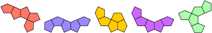 - Surround each piece in turn with the other four pieces.
