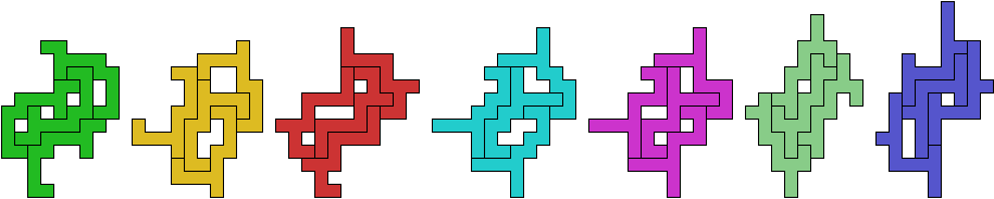 Juris Čerņenoks found the smallest tetrads for polyominoes with diagonal symmetry, which use 19-ominoes: