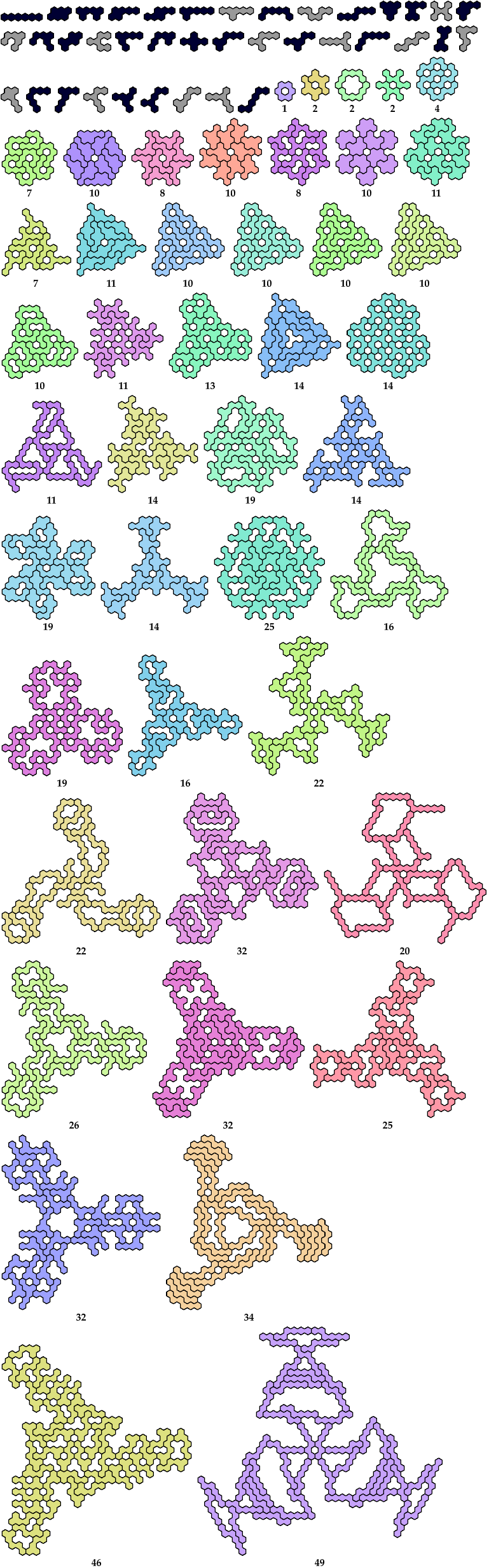 For smaller polyhexes, see Polyhex Tri-Oddities.