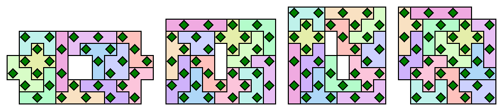 The positions of the diamonds must alternate as shown.