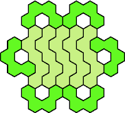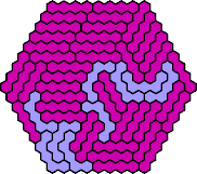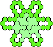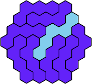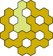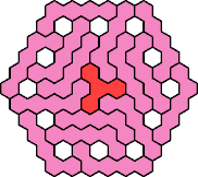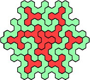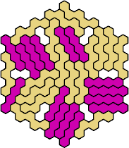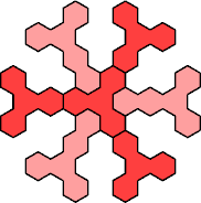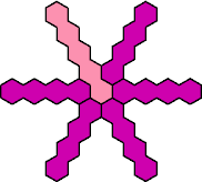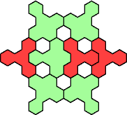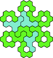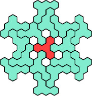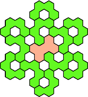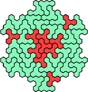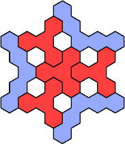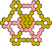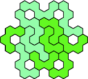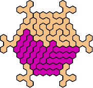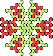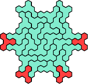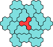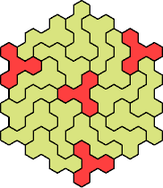 Here are the smallest known fully symmetric polyhexes with an odd number of cells, formed by copies of a given tetrahex and pentahex, using at least one of each.