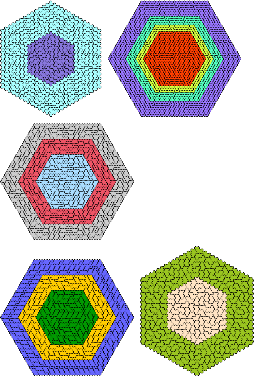 Here I show the smallest hexagonal polyhex of each type