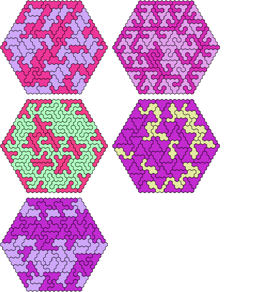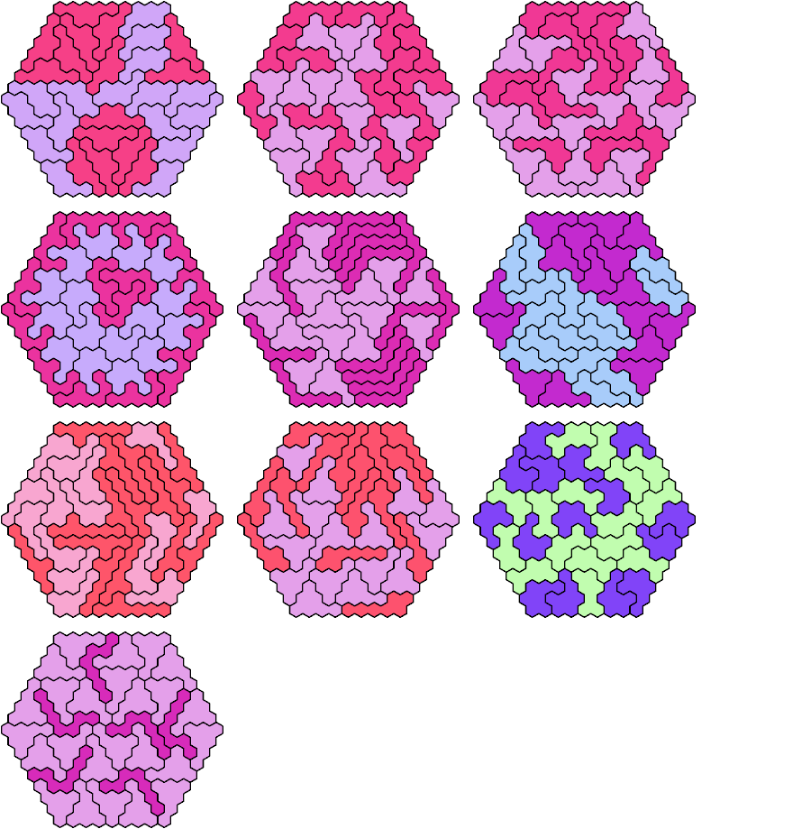 These seven heptahexes can tile a regular hexagon polyhex by themselves: