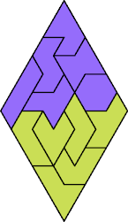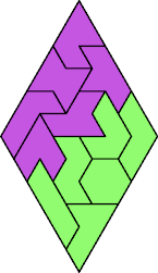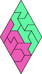 Cover each diamond with the 12 hexiamonds so that every hexiamond covers cells of just one color. You may flip hexiamonds over.
